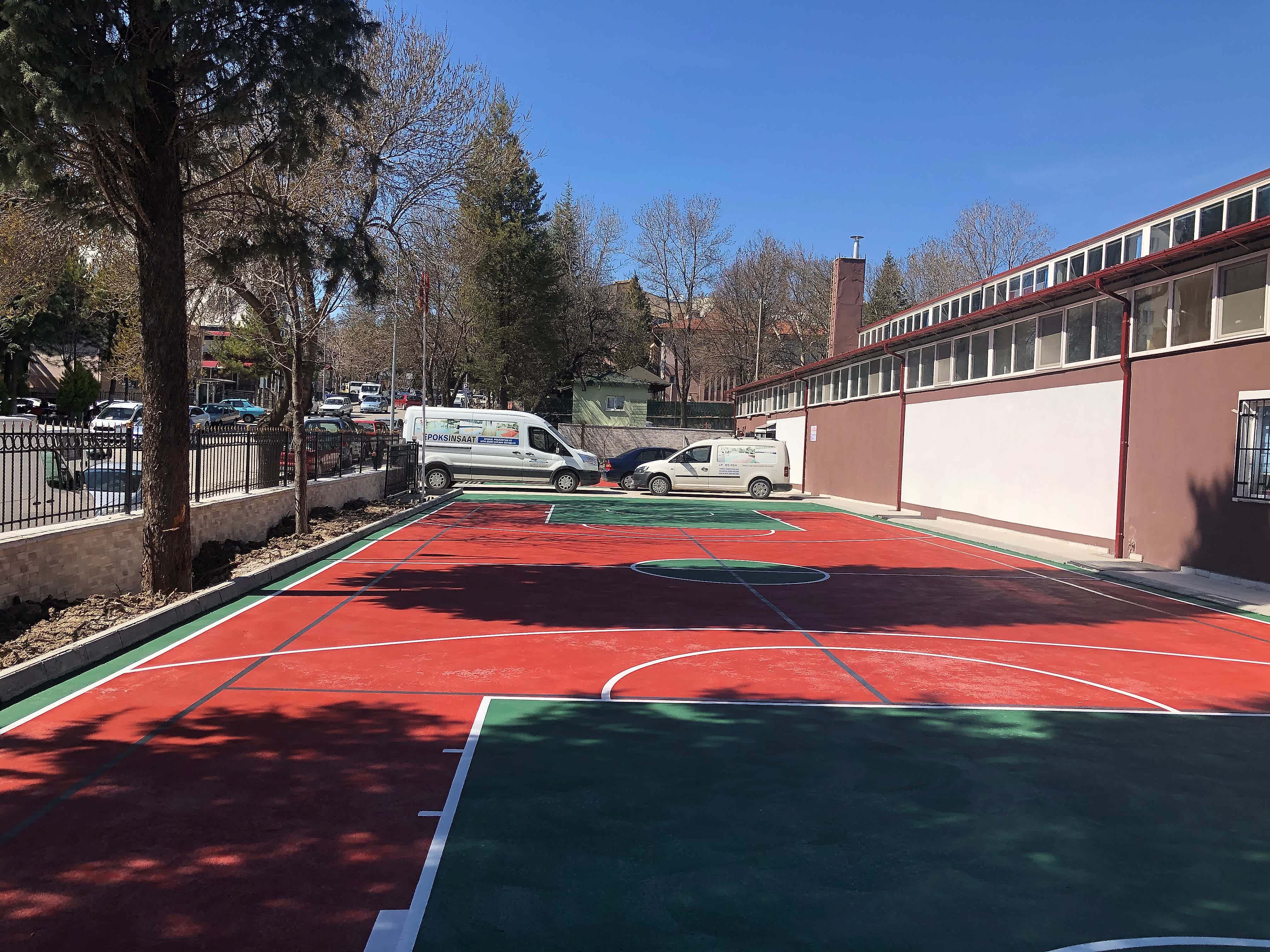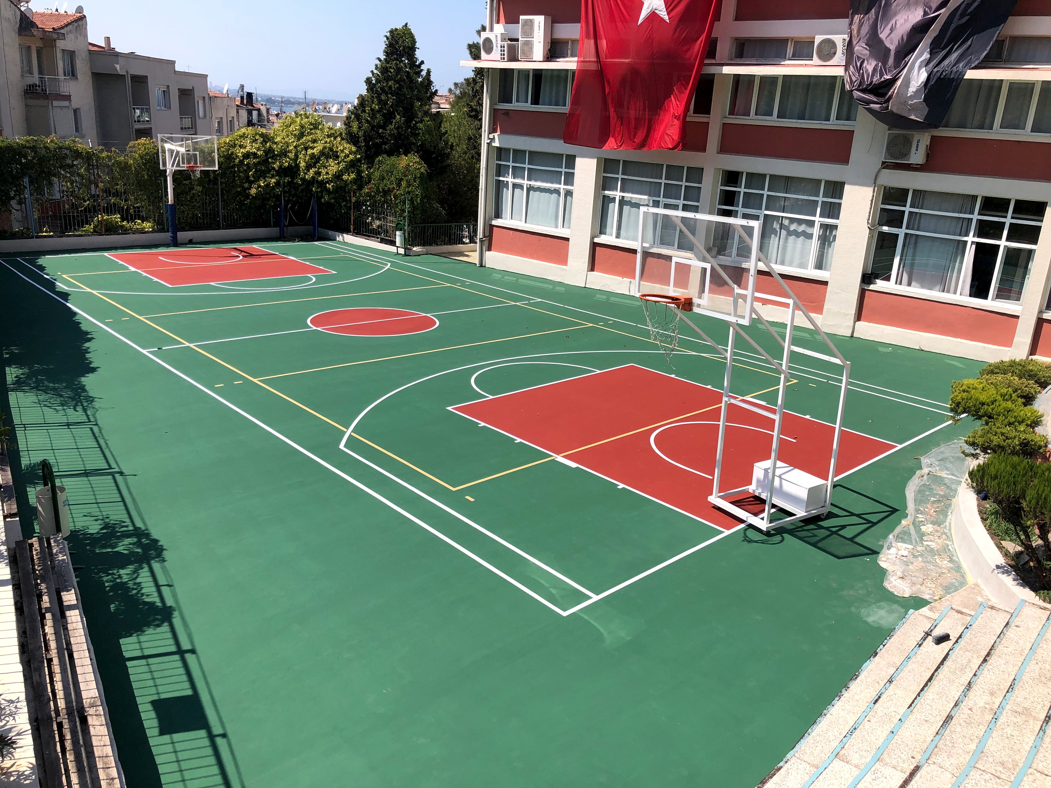 Dış mekan basketbol sahası zemin kaplaması genel de akrilik zemin kaplama tercih edilirz fakat bazı özel okullar epdm kaplama tercih eder. epdm tartan p..